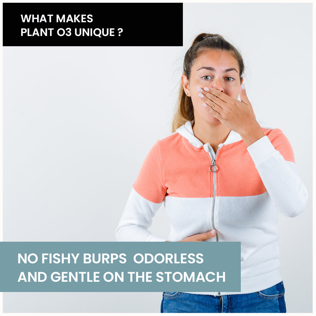 Unlike fish oil, PLANT O3 uses algae-based DHA, the original source of omega-3 in the marine ecosystem.
